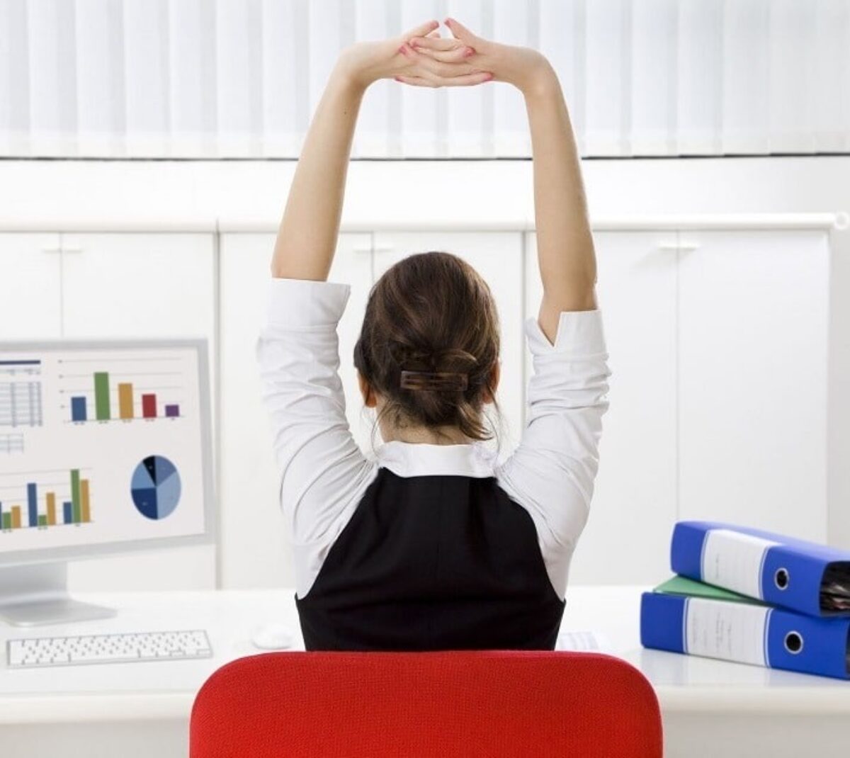 • انجام حرکات کششی پشت میز: مجموعه ‌ای از حرکات کششی ساده مانند کشیدن شانه‌ ها، خم کردن گردن به طرفین، یا چرخاندن مچ‌ ها می ‌تواند تنش عضلات را کاهش داده و دامنه حرکتی را افزایش دهد. این حرکات، به ‌ویژه در کاهش دردهای ناحیه گردن و کمر بسیار مؤثرند.