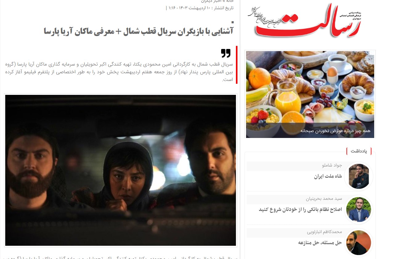 1. در یکی از کانال‌های شرکت پارس این خدمت تبلیغ شده است.