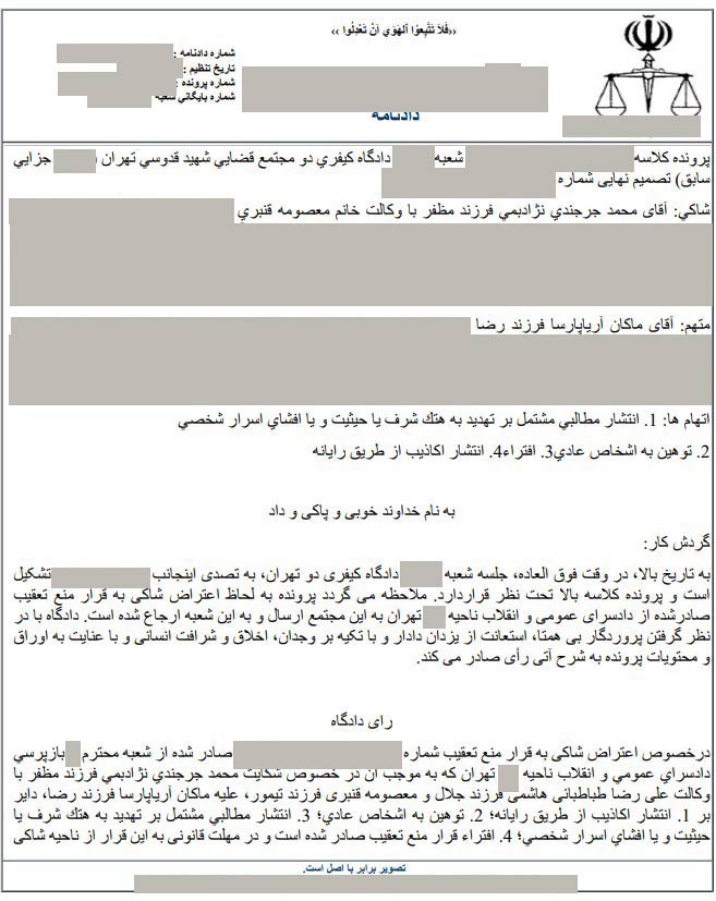 رای جدید دادگاه بابت شکایت محمد جرجندی